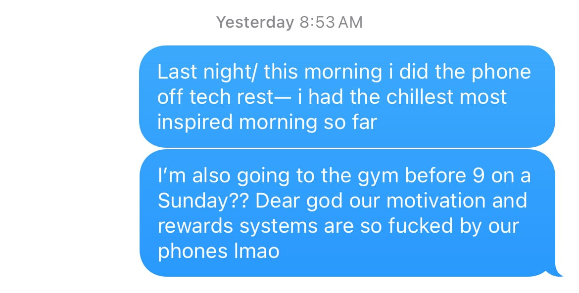 I’ve always struggled to concentrate bc ADHD (which I didn’t know I had at the time, but that’s another story). However, it was obvious that the little slot machine in the palm of my hand wasn’t helping the situation.